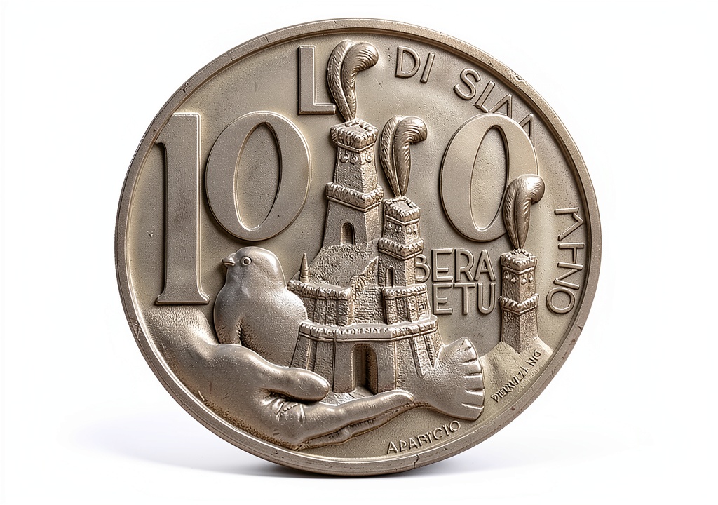 It translates to “Eternal Freedom,” reflecting San Marino’s long-standing values of liberty and independence, as depicted on the reverse side of the coin.
